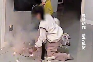 女孩在家玩 “拼豆”游戏 熨斗突然冒火花