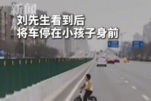 小孩在车流量大的马路上骑车乱窜,车主见状立刻停车飞奔上前制止
